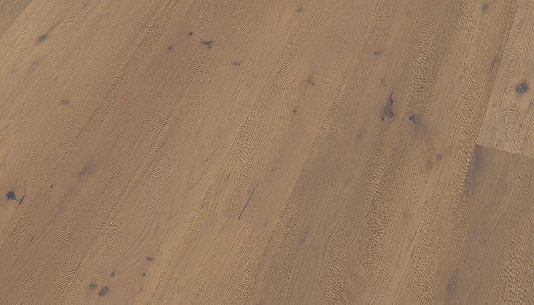Dieser Eiche S Parkettboden in Schmaldielenform kombiniert eine besonders geringe Aufbauhöhe mit einem eleganten Farbspiel: Die Oberfläche ist gebürstet, geräuchert und weiß geölt. Das Räuchern gibt dem Holz zunächst einen dunkleren Grundton, und das anschließende weiße Öl hellt die Oberfläche wieder sanft auf — so entsteht ein spannender Kontrast zwischen dunkler Tiefe und heller Oberfläche. Der Boden ist ab Werk fertig behandelt und sofort begehbar.